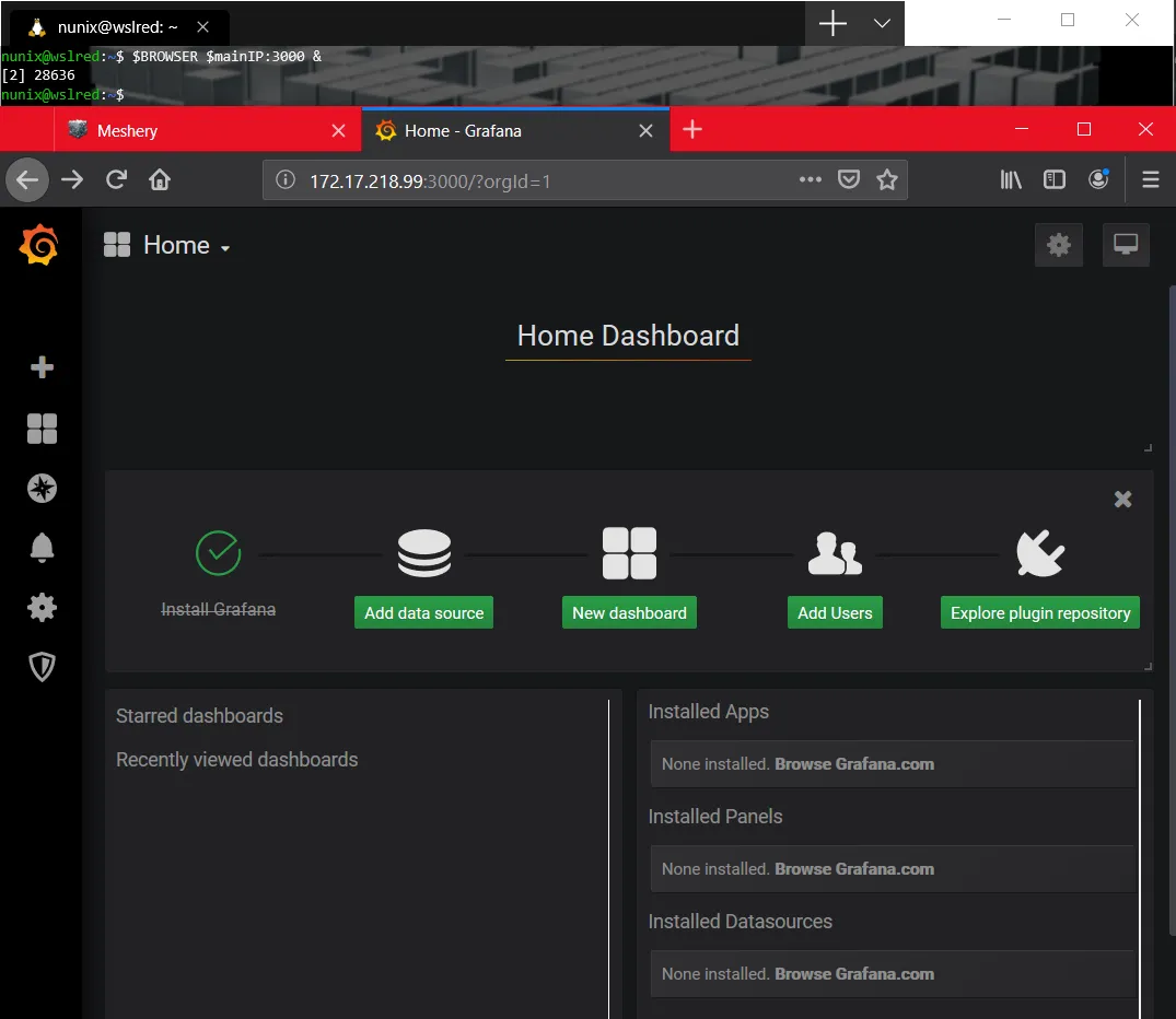 - Grafana is not mandatory however is strongly recommend. We will setup a dockerized instance, but feel free to plug Meshery with your existing instance.