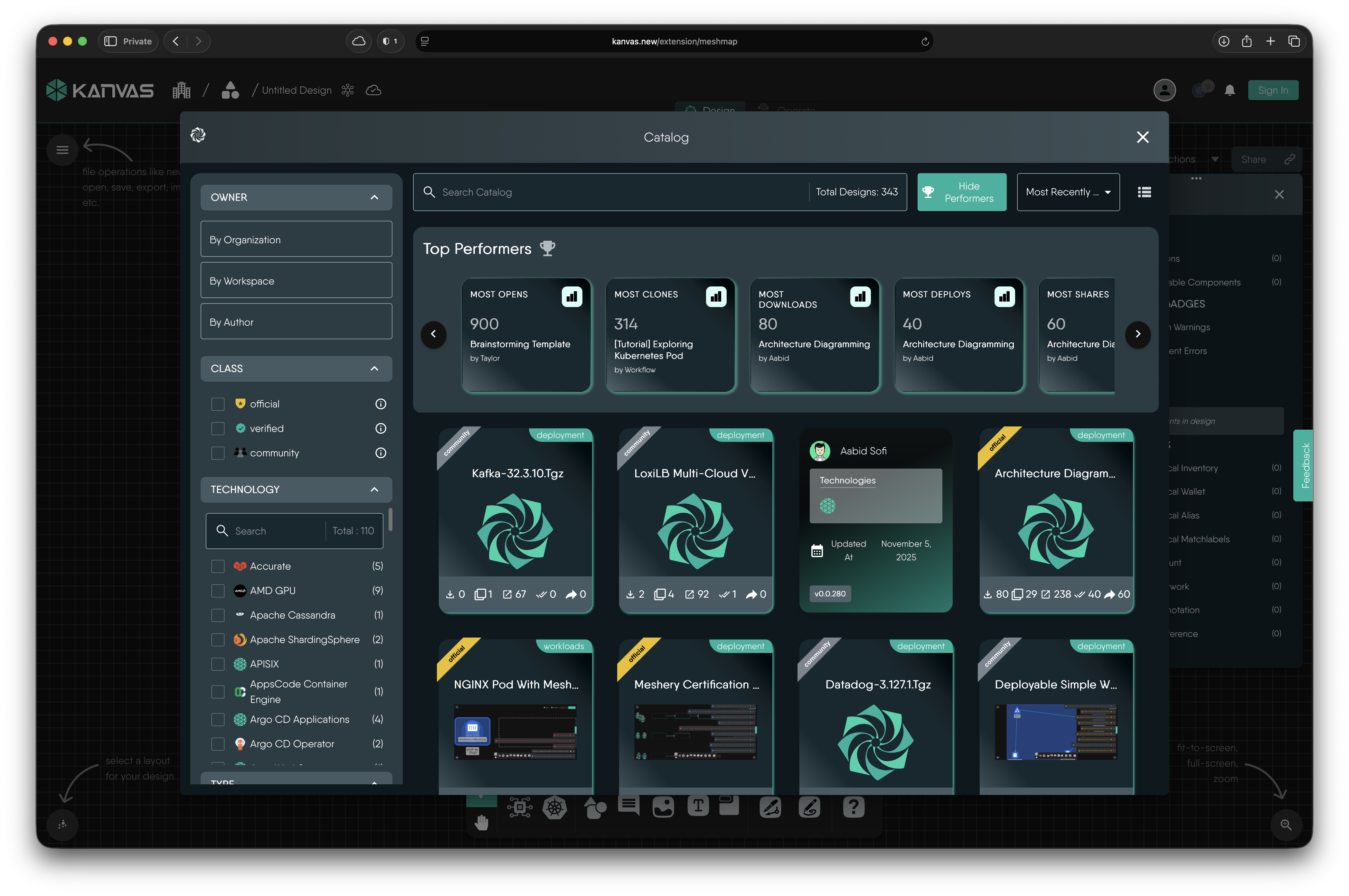 The power of Kanvas stems from its foundation in Meshery, which was recently recognized as the sixth highest-velocity project out of more than 240 projects in the CNCF. This incredible momentum, driven by over 3,000 global contributors, underscores the platform's stability, rich feature set, and the vibrant community driving its innovation.