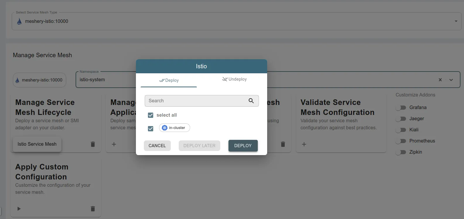 Now that we have a Kubernetes cluster and Meshery, we are ready to download and deploy Istio resources.